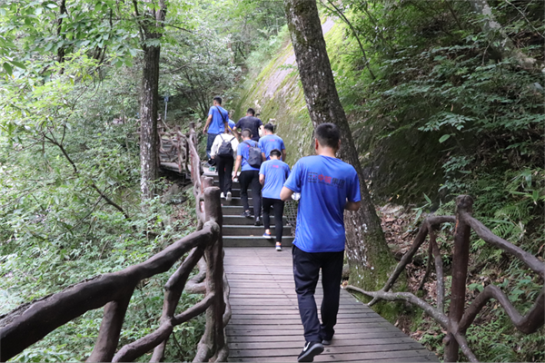 7月16日早上我們由合肥出發(fā),在到達(dá)美麗的天堂寨風(fēng)景區(qū)之后,經(jīng)過短暫的休整,中午我們進(jìn)行了本次團(tuán)建的第一項活動,就是攀登海拔1700余米的天堂寨主峰。