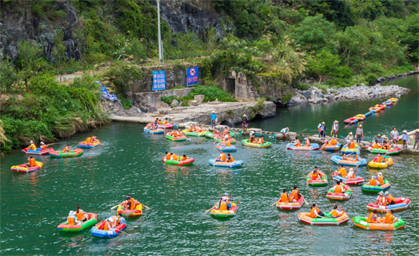 下午在徒步過后陶總還帶領(lǐng)大家體驗了刺激的大別山漂流,大約2個小時的漂流路線,大家感受了一次激流勇進(jìn)的刺激,大家兩兩一船,時而劃船,時而潑水打鬧,玩的非常酣暢淋漓。