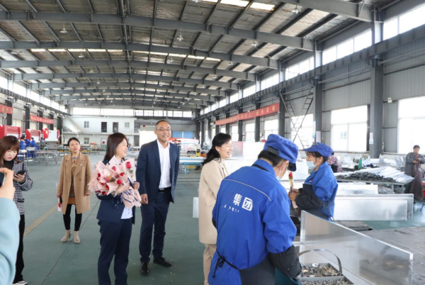 圖為長豐縣總工會戴主席依次慰問了車間各個崗位中的女職工,并送上了鮮花