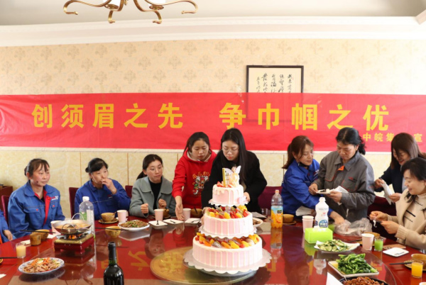 中午中皖集團工會準備了豐盛的午餐,為公司的全體女職工送上節(jié)日的喜悅,感謝各個崗位中奮斗的女職工,女職工做為社會中的弱勢群體,不僅在日常工作中需要辛勤勞作,在生活中也承擔代著重要角色。